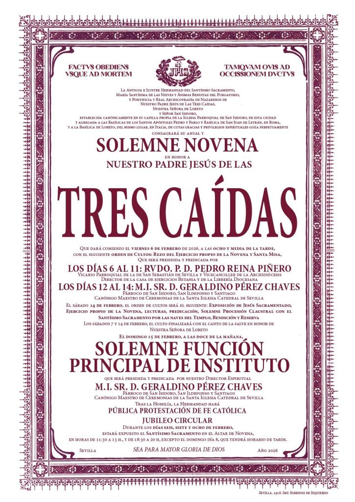 Cartel convocatoria cultos Ntro. Padre Jesús de las Tres Caídas de San Isidoro (Sevilla)