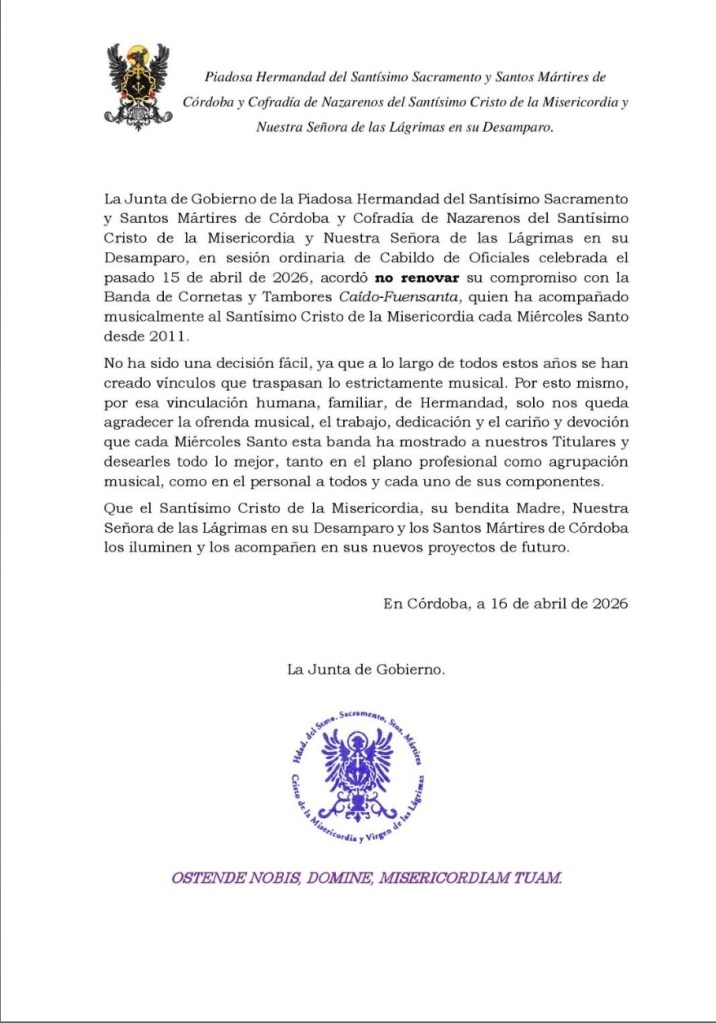 Fuente: Redes Sociales Hdad. de la Misericordia